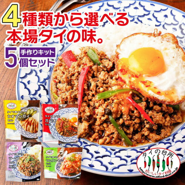 自宅で簡単!本格タイ料理5種を選べる手作りキット。ガパオ、カオマンガイ等人気メニューが揃い、送料無料!タイの台所オンラインショップ