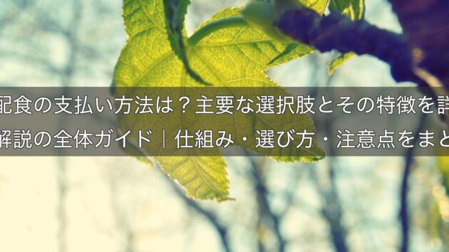 宅配食の支払い方法は?主要な選択肢とその特徴を詳しく解説の全体ガイド|仕組み・選び方・注意点をまとめ