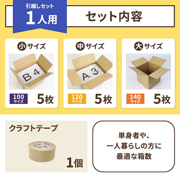 【単身引越しはこのセットで安心!】必要なものが全て揃う、一人暮らし向けの引越しセットです。