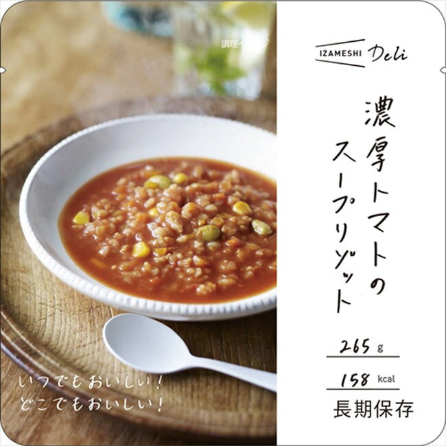 非常食 セット 備蓄 食糧 災害 食料 防災食 濃厚トマトのスープリゾット Deli 1袋単位 265g 158kcal 長期保存 3年保存 IZAMESHI イザメシ 日本国産 地域 自宅 食卓 オフィス 事業所 事務所 地域 備蓄食 企業 福利厚生 寄付 贈り物 アウトドア