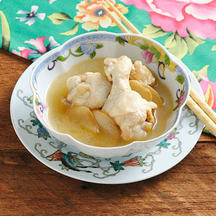 台湾料理「マーヨージー」を再現した鶏肉スープは、生姜の風味で心も温めます。