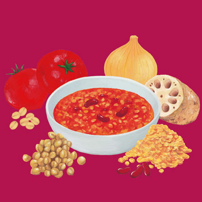 3年保存可能な「IZAMESHI キヌアとレッドキドニーのミネストローネ」。