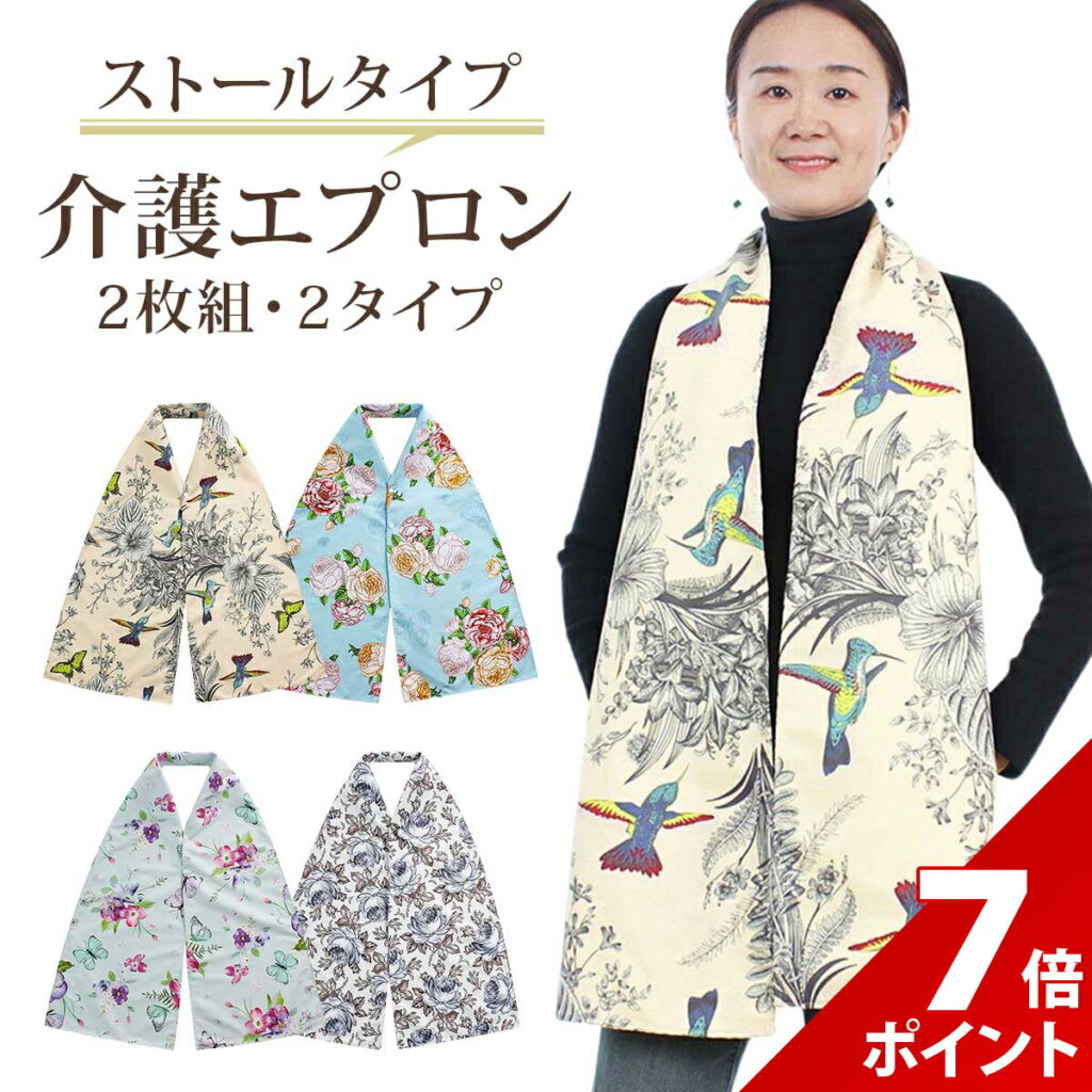 おしゃれなスカーフ型介護エプロン。上品なデザインで食事を楽しく、汚れも安心!2枚セットでお得。 いいひ 楽天市場店