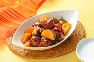 バジルチキンの香り高い風味、とんかつ卵とじ風の懐かしい味わい、彩り野菜とあじ竜田揚げの甘酢あんかけで、食卓が華やかに。