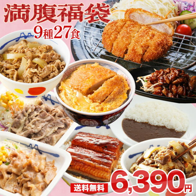 松屋満腹福袋2026!9種27食、冷凍食品で在宅応援。お弁当、仕送り、非常食にも!【1食237円】 松屋フードコート店