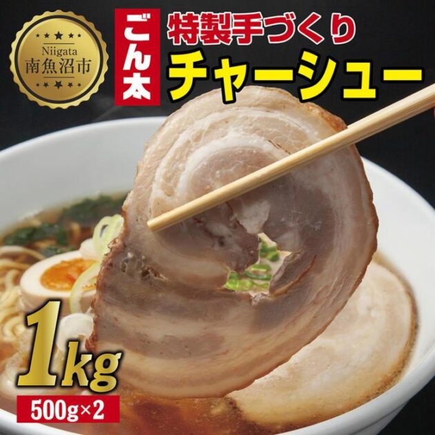 南魚沼市発!特製ごん太チャーシュー1kg。カット済みで便利!簡単調理で本格的な味が楽しめます! 新潟県南魚沼市