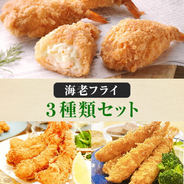 築地直送!無保水海老フライ3種セット。手作りならではの旨味と食感!限定10%OFF!