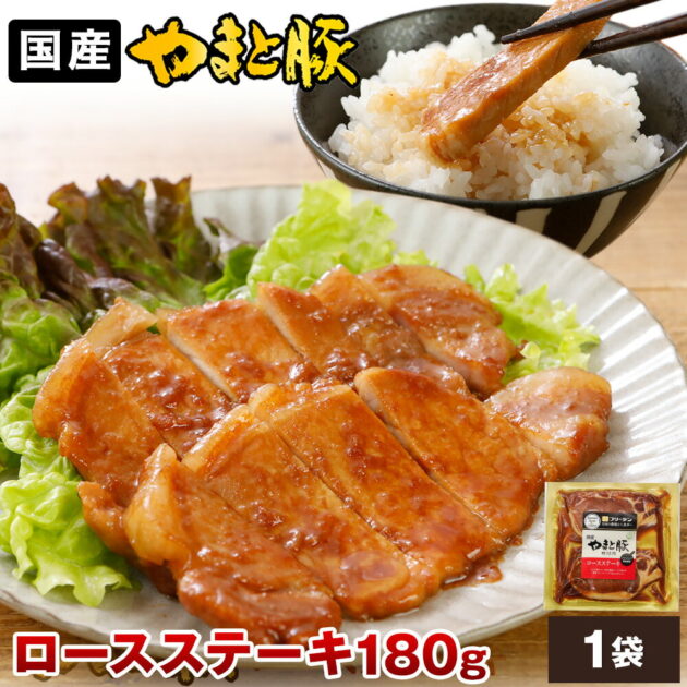 やまと豚 ロース ステーキ 180g (冷凍) | ポークステーキ トンテキ とんてき 味付け肉 お取り寄せグルメ 後払い 冷凍食品 冷凍 惣菜 お弁当 おかず 食品 和風 ステーキ肉 味付き 肉 焼肉 タレ漬け 豚丼 焼くだけ ギフト 簡単調理 豚肉 お肉 ご飯のお供 お取り寄せ ステーキ肉