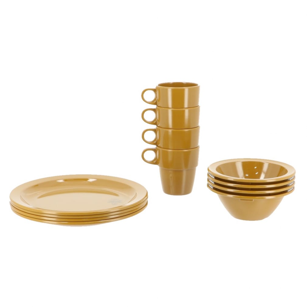 メラミン製のプレートセットは軽量で扱いやすく、専用のディッシュケースが付属するため持ち運びにも便利。