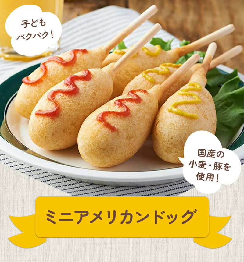 国産小麦と豚肉を使用した、お子様も安心して食べられるミニサイズのアメリカンドッグです。