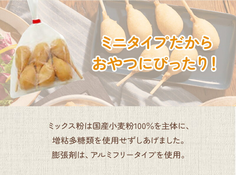 国産小麦と豚肉を使用した、安心安全なミニサイズのアメリカンドックです。