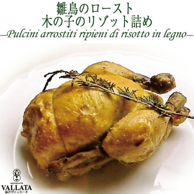 神戸ヴァッラータシェフ手作り、雛鳥ロースト!木の子リゾット詰め、豪華な本格イタリアン。特別な日に、手軽に贅沢を!40-60代に人気。 イタリア料理 神戸ヴァッラータ