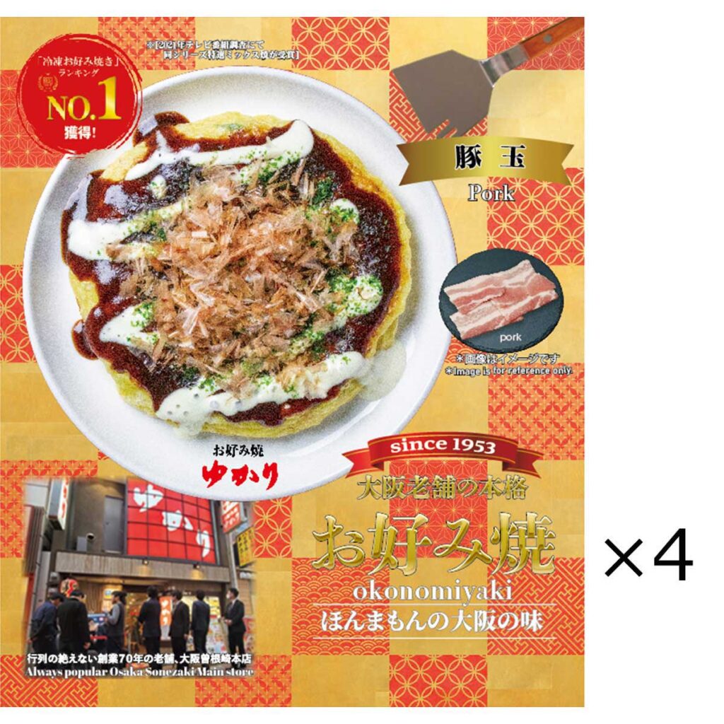 大阪名物ゆかりの豚玉!レンジで簡単、本場の味が手軽に楽しめる冷凍お好み焼き4枚セット。ご当地グルメをお取り寄せ! 産直お取り寄せNセレクト
