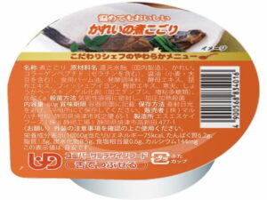 煮魚の定番「かれいの煮付け」をゼリー状に仕上げています。調理済みのため、袋を開けてそのまま食べられます。普段の食事として慣れ親しんだ煮魚の味を、食べやすい形態で再現したものです。