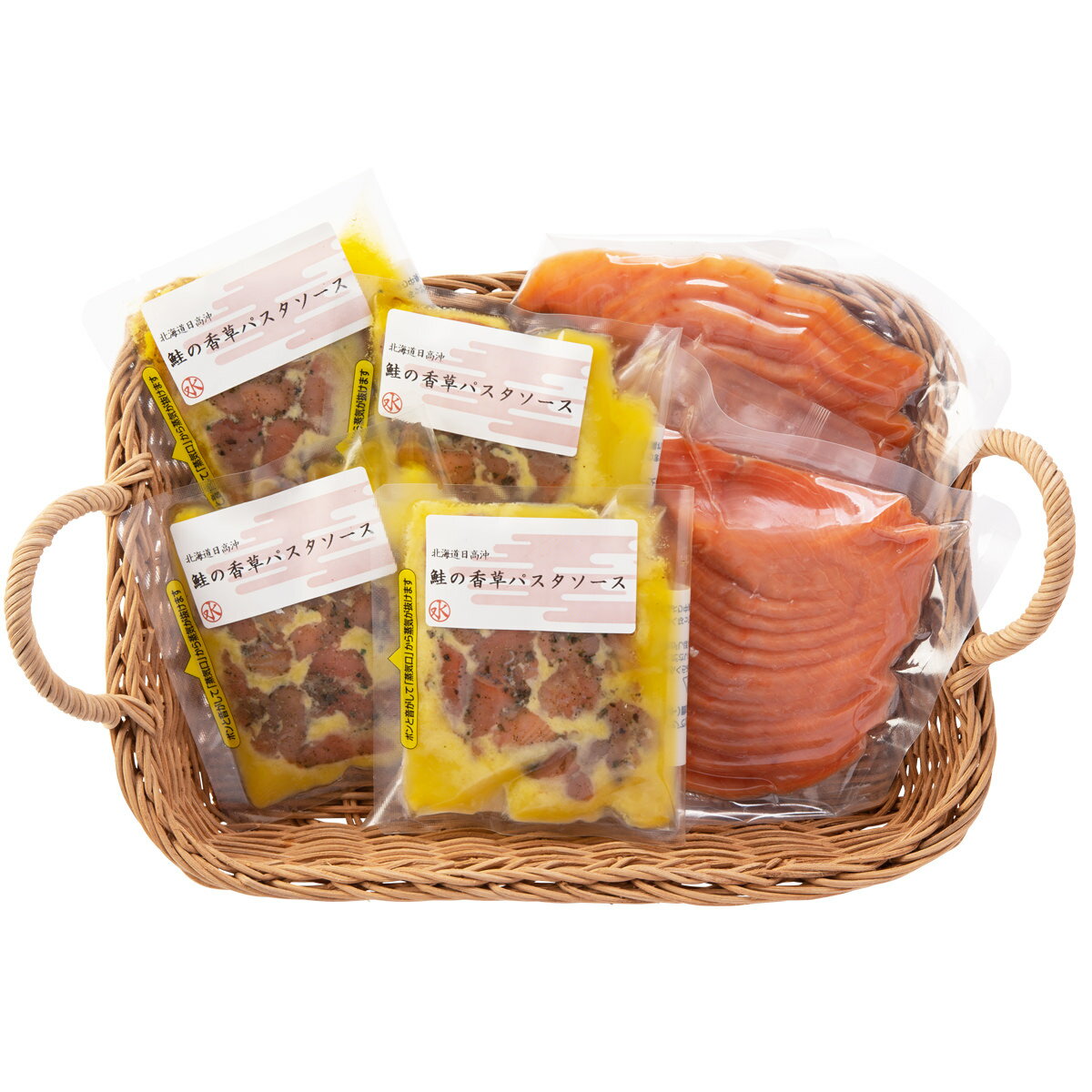 北海道産秋鮭の贅沢セット!スモークサーモン切り落としと濃厚パスタソースで、おうちで手軽に秋の味覚を。送料無料!産直お取り寄せNセレクト