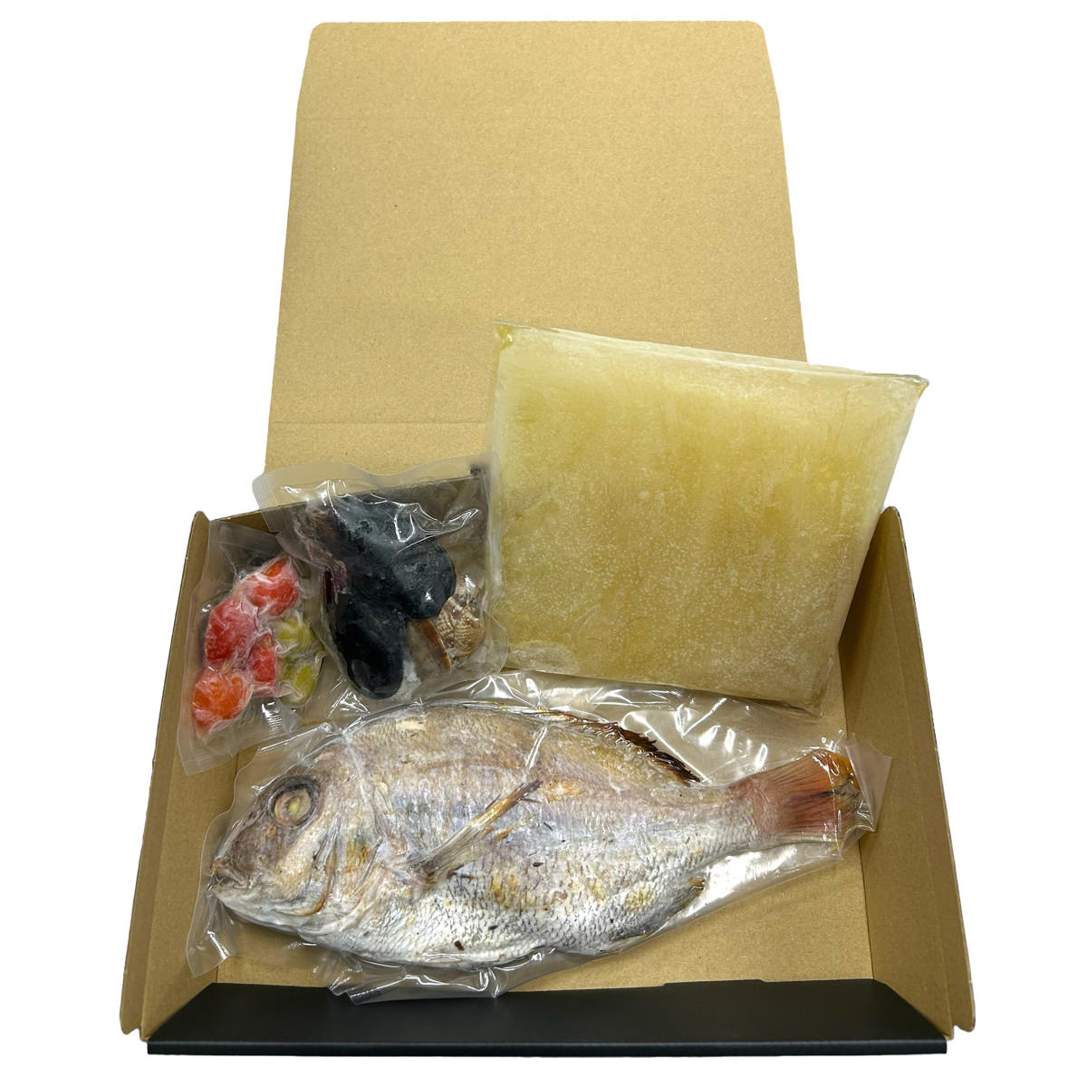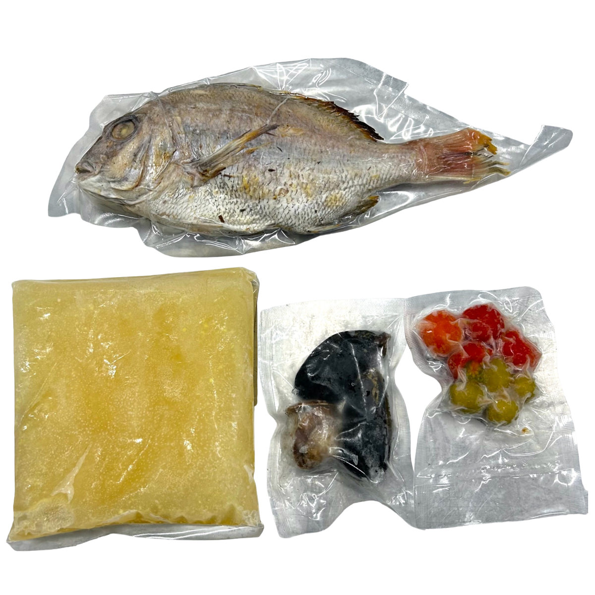 明石海峡の荒波で育った天然真鯛をまるごと一尾使用!手軽に本格アクアパッツァが楽しめるミールキットです。