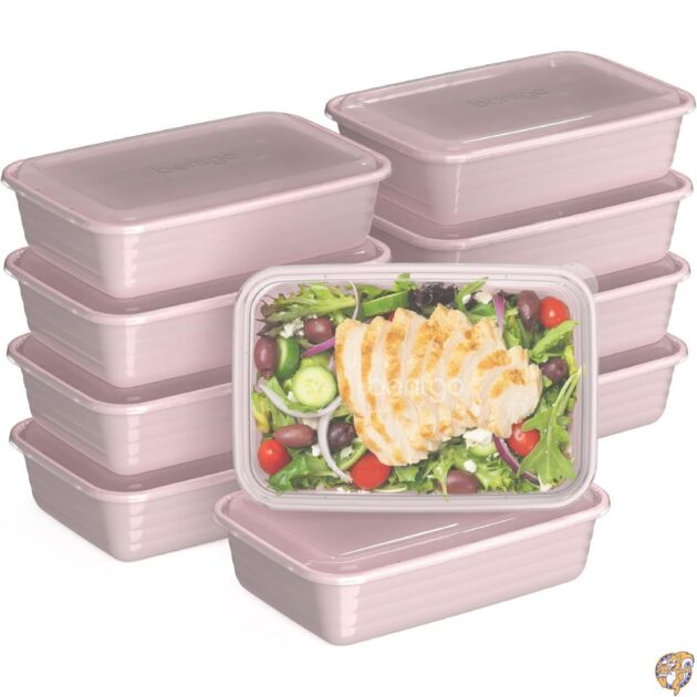 Bentgo Prep 1-Compartment Containers – 20-Piece Meal Kit with 10 Trays & Custom-Fit Lids Durable Microwave, Freezer, Dishwasher Safe Reusable BPA-Free Food Storage (Blush Pink)