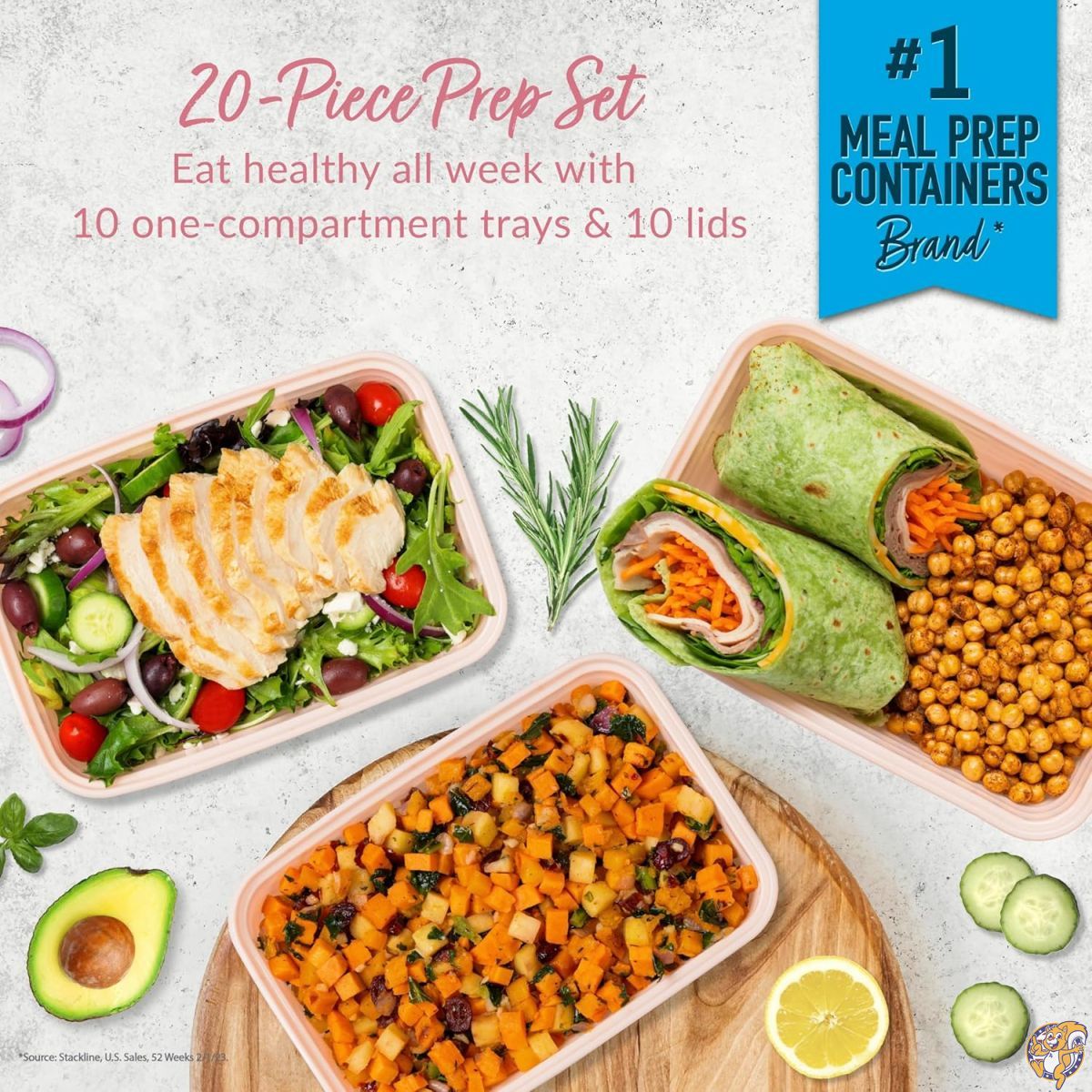 【最大2000円クーポン25日〜】Bentgo Prep 1-Compartment Containers – 20-Piece Meal Kit with 10 Trays & Custom-Fit Lids Durable Microwave, Freezer, Dishwasher Safe Reusable BPA-Free Food Storage (Blush Pink)