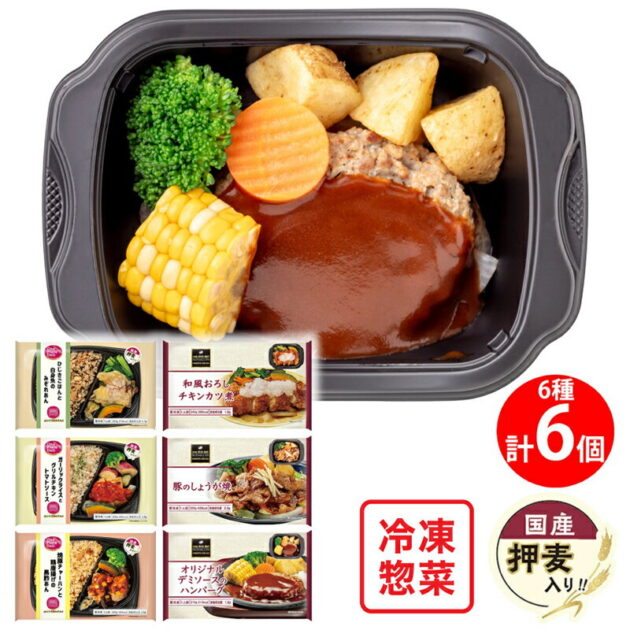 阪急デリカの冷凍お弁当・惣菜セットは、6種各1個ずつのバラエティ豊かな詰め合わせです。