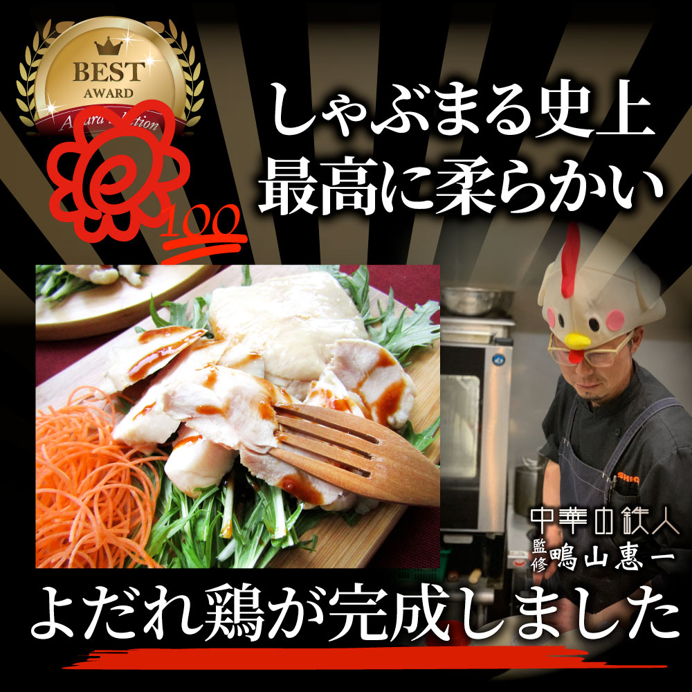シギ監修、しゃぶまる史上最高に柔らかいよだれ鶏!モモ/ムネ選べる100食セット。簡単調理でパーティーや非常食にも。 | お肉のしゃぶまる